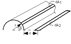 A-11: Strip element on outer surface of circular semicylinder to parallel strip element in plane passing through cylinder axis.