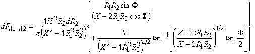 Definitions: R1=r1/r; R2=r2/r; H=h/r; X=R12+R22+H2; F= cos-1(1/R1) + cos-1(1/R2)