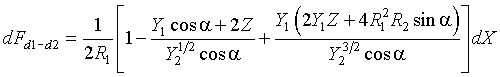 Definitions: R=r/h; dX=dx/h; Y1=1+R12+R22; Y2=Y12-4R12R22; Z=cosα-R2sinα