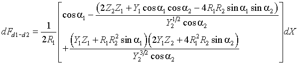 Definitions: X=x/h; R=r/h; Y1=1+R12+R22; Y2=Y12-4R12R22; Z=cosα-R2sinα