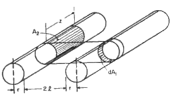 B-100: Differential ring on surface of right circular cylinder to finite area on surface of parallel cylinder of the same diameter. End of finite area is opposite the ring.