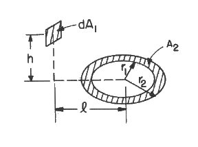 SECTION B Factors From Differential Elements to Finite Areas B-25: Plane element to ring area in plane perpendicular to element. Reference: Siegel and Howell, 1980 Definitions: H=h/l, R=r/l Governing equation: To download a copy of this equation in MS Word 97 Format, click HERE.