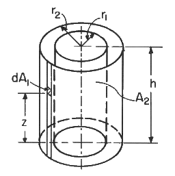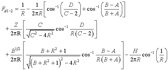 Definitions: H=h/r1; R=r2/r1; Z=z/r1; A=(R2-1); B=(H-Z)2; C=Z2+R2+1; D=Z2-A