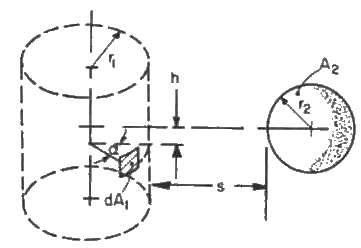 B-61: Element on surface of cylinder at longitude α to sphere; axis of sphere bisects and is normal to cylinder axis.