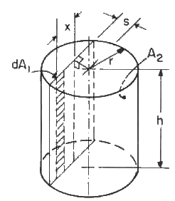 B-81: Vertical differential strip on plane contained in cylinder with axis parallel to strip. Strip and cylinder of equal length. Factor from strip to entire inner surface of cylinder.