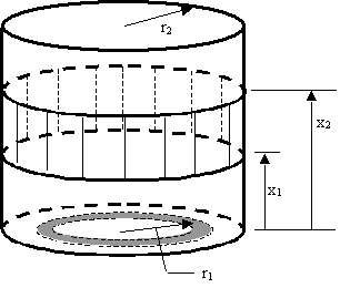 B-94: Ring element on base of right circular cylinder to finite circumferential ring on interior of cylinder.