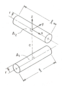 C-102: Perpendicular cylinders of equal radius and equal finite length, closest separation at centers.
